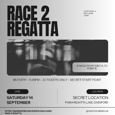 Get ready for the most exhilarating race experience of the year—Race 2 Regatta! On Saturday, 14th September 2024, as the sun begins to dip below the horizon, we invite you to join a select group of runners for an unforgettable night of speed, strategy, and adventure. Starting at 5:45 PM, this unsanctioned, high-stakes race will take you from a secret starting point back to the famous Regatta Lake at Oxenford. The thrill of the unknown will fuel your adrenaline as you navigate through the twilight, racing against time, your fellow competitors, and the fading light. In true underground fashion, the exact course and meeting point will be revealed only on the morning of the race. Expect the unexpected as you chase the finish line under the setting sun, surrounded by the excitement of your peers and the beauty of the night. This isn’t just a race; it’s a test of your endurance, courage, and cunning. Will you be the first to reach Regatta? Join us for an evening where anything can happen,