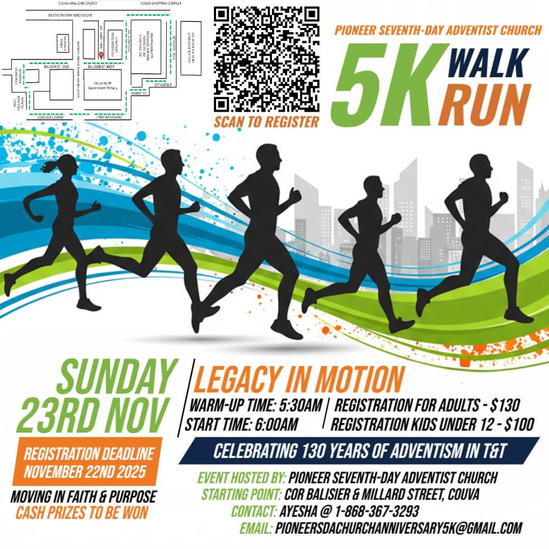 - All participants are welcome to visit Pioneer Seventh-day Adventist Church’s Community Fair after completing the 5K.