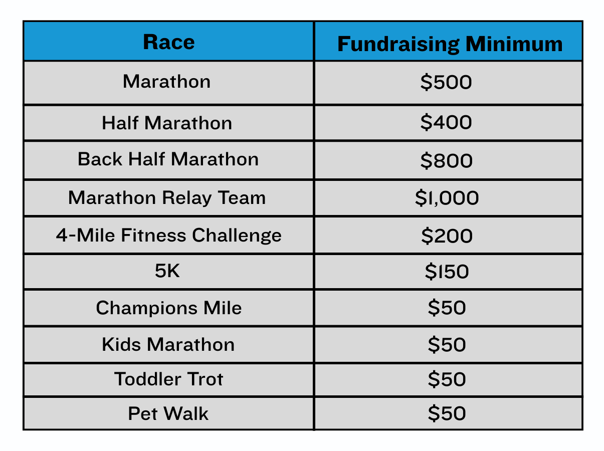 Earn back your registration fee by reaching your race's fundraising minimum!