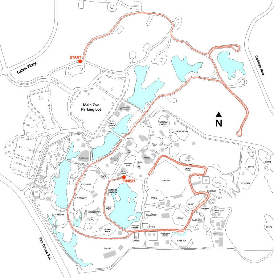 The Zoo will open for spectators at 5:00 p.m. You can cheer on your favorite runners in the Plaza and meet them at the finish line at Lakeside.