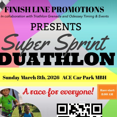 On Sunday March 8th 2026, Finish Line Promotions will for the second time host a Super Sprint Duathlon in collaboration with Triathlon Grenada and Odessey Timiming & Events.