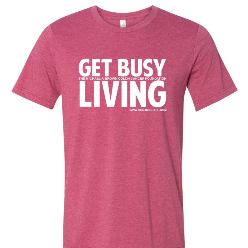 Get Busy Living Tee Heather Raspberry