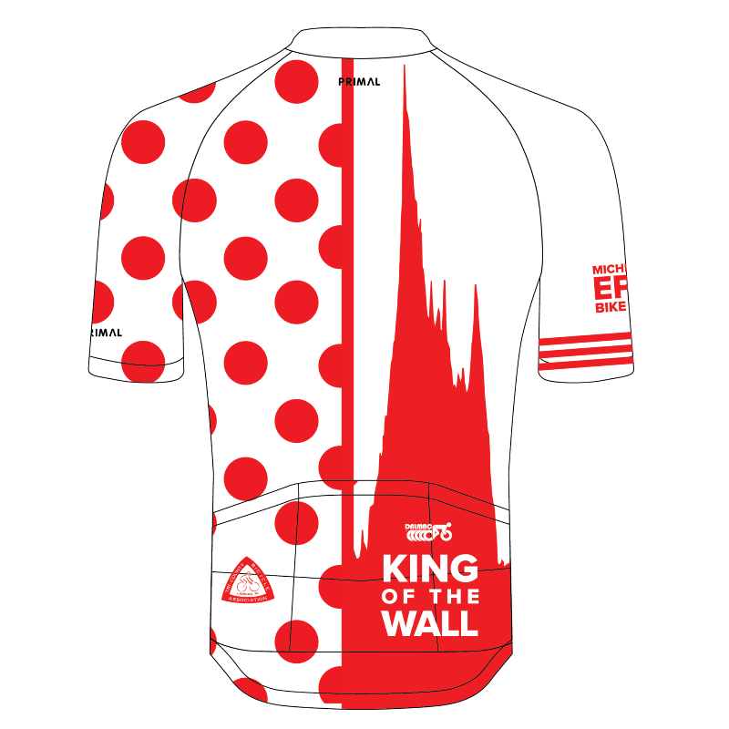 The special jersey is a short sleeve Primal Prisma Tour jersey with a "King of the Wall" design. The short sleeve jersey is a Primal Prisma Tour jersey with a DALMAC design. Crafted with elite fabric and advanced fit technology to provide the most comfortable riding experience. Using industry-leading four-way stretch Valo fabric, the lightweight breathable fabric of the Prisma Tour jersey provides unrivaled cooling and moisture wicking with silicone waist gripper. The Mersia mesh fabric on the back and side panels keep the jersey closer to your body. For a looser fit, please order one size larger.
