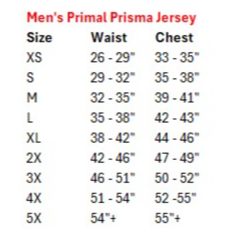 The sleeveless jersey is a Primal Prisma jersey with a DALMAC design. Crafted with elite fabrics and advanced fit technology to provide the most comfortable riding experience. Utilizing industry-leading Q3 fabric, these jerseys are designed to wick moisture from the surface of the skin and push it to the face of the jersey to evaporate. This push-pull moisture management system allows the body to maintain a consistent, comfortable body temperature. For a looser fit, please order one size larger.