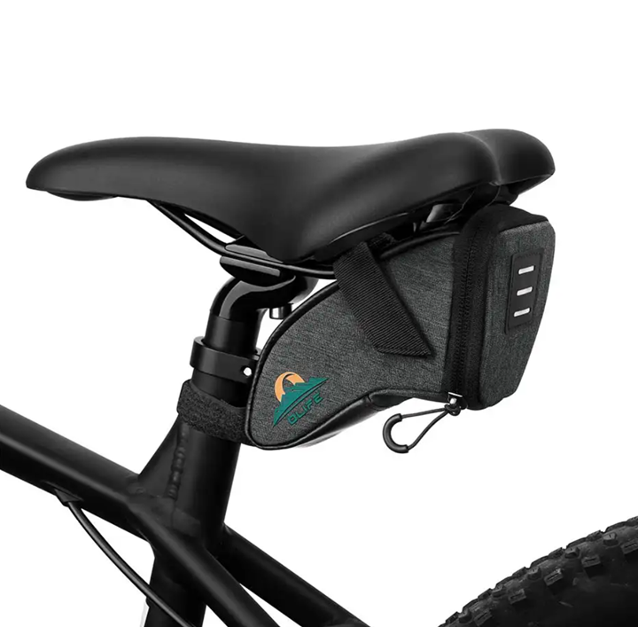 ● High-quality Material: Water-resistant, lightweight, and durable 300D Polyester fabric. ● Enough Capacity (0.8L/0.21Gal): Ideal to store small items such as flashlights, knives, keys, smartphones, etc. ● Hook And Loop Fasteners: Easy to install and take off; suitable for all types of bike saddles. ● Inner Mesh Pocket: Perfect organization for small items and gadgets. ● Reflective Taillight Hanger: Alert others of your presence at night; an optional taillight can be attached. MATERIALS: 300D Polyester TECHNICAL CHARACTERISTICS: Weight, 105 g(3.7oz)