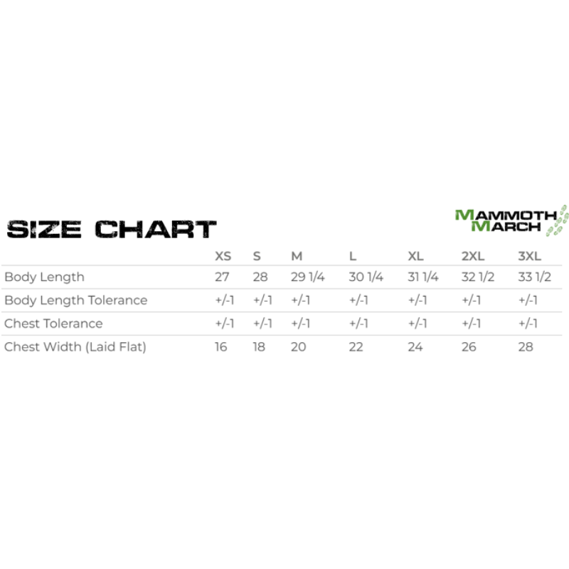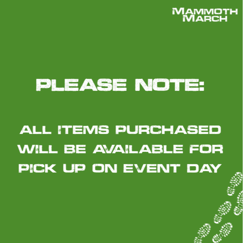 • Unique, limited-edition 2027 MammothMarch event shirt • 4.5 oz./yd² (US) • 90/10 polyester/cotton mix ### PLEASE NOTE: All items purchased will be available to pick up on event day ###